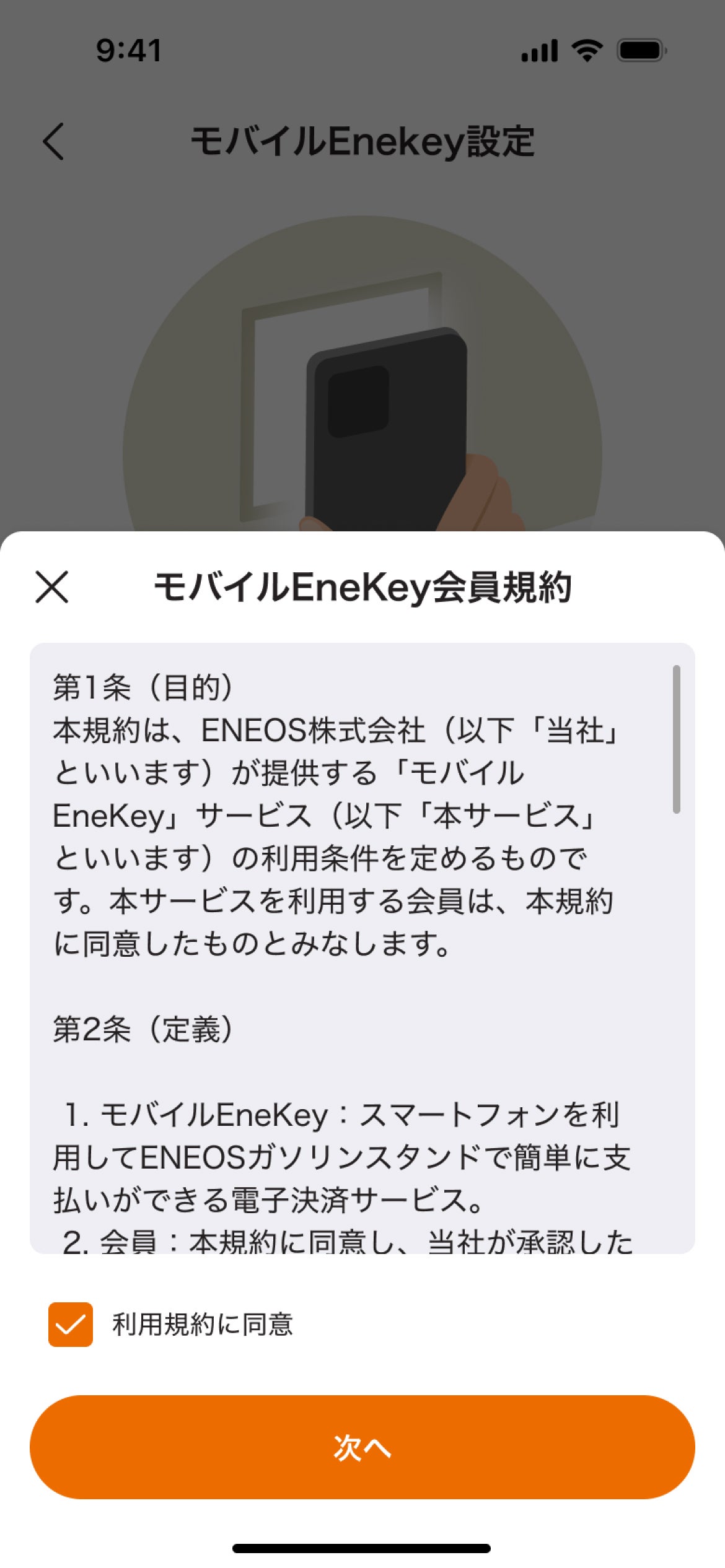 会員規約をご確認後、 「利用規約に同意」にチェックをつけ「次へ」を選択
