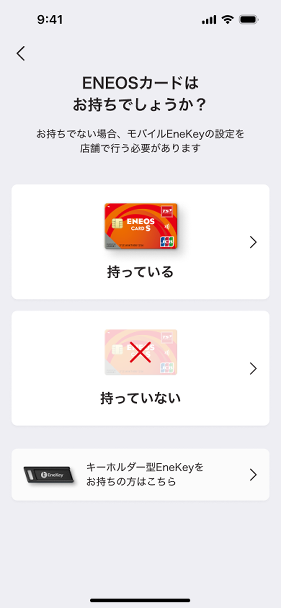 「キーホルダー型EneKeyを お持ちの方はこちら」を選択