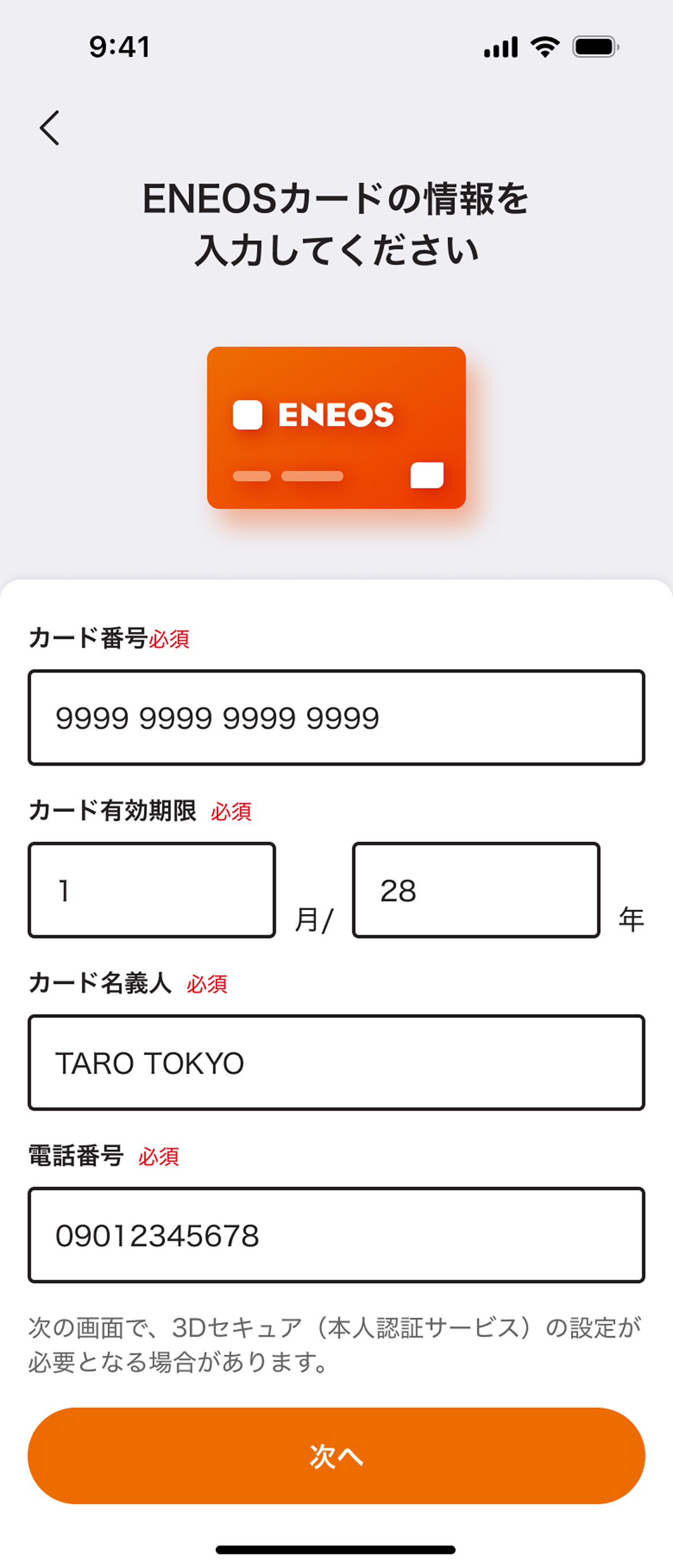 情報を入力し 「次へ」を選択し 3Dセキュアを完了する