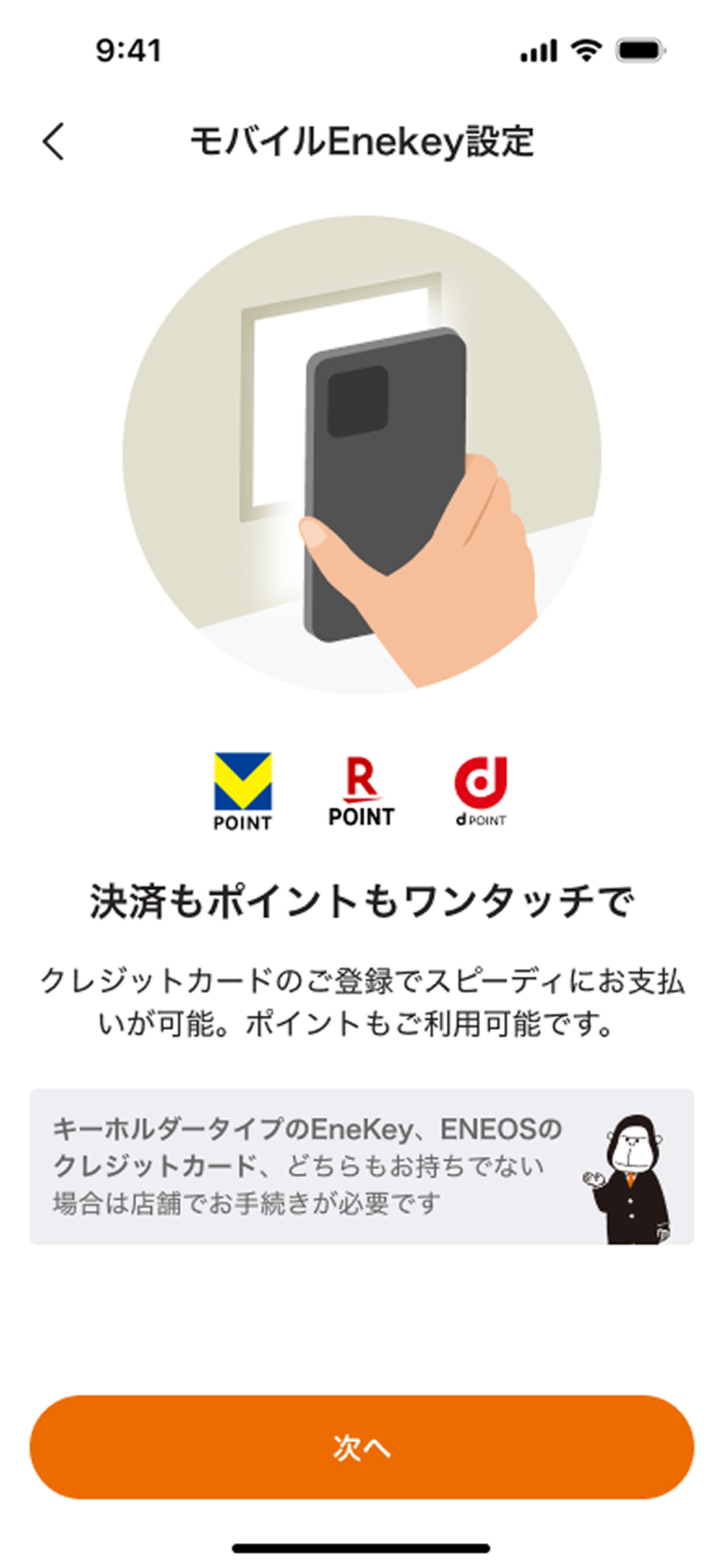 EneKeyの情報を入力し、 「次へ」を選択